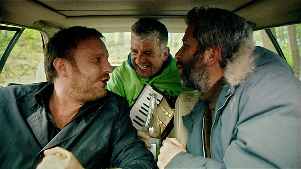 Geschichtsprofessor Baisch, sein depressiver und tablettensüchtiger Schwager Anzengruber und ein manischer Kleinkünstler haben nach einer Feier einen Autounfall auf einer abgelegenen Landstraße. Eingekeilt zwischen zwei Bäumen bleiben sie stecken, Türen und Fenster lassen sich nicht mehr öffnen, die Fenster aus Panzerglas lassen sich nicht einschlagen...