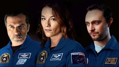 Valerie Pachner (mitte), Merab Ninidze (links) und George Blagden (rechts) führen die internationale Besetzung von „Sojus“ an. Bild: Samsara Film